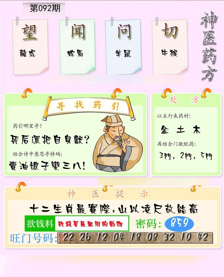 | 092期:⑤肖 | 牛龙蛇鼠猴 | -0中 |