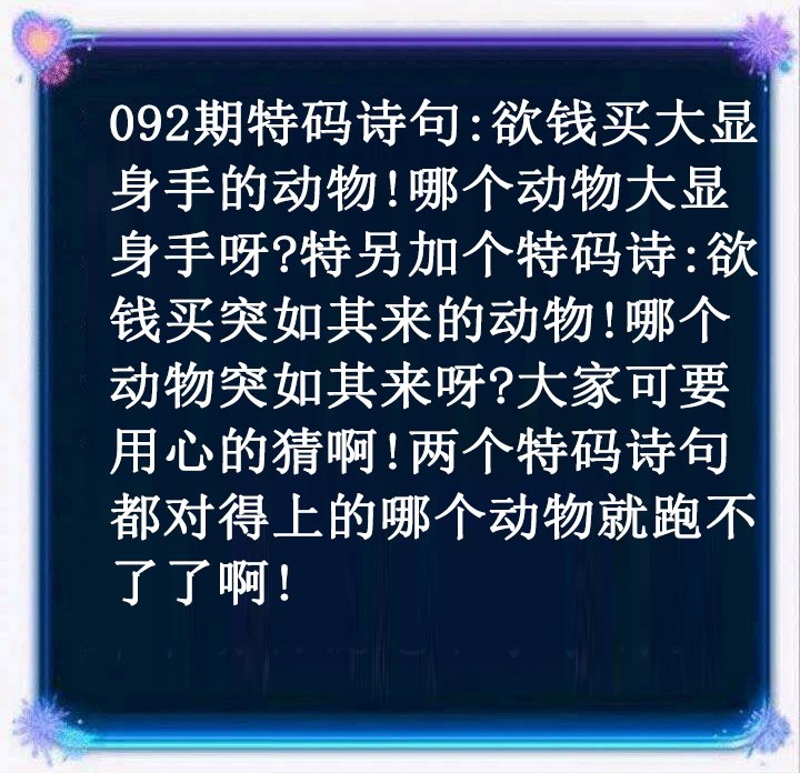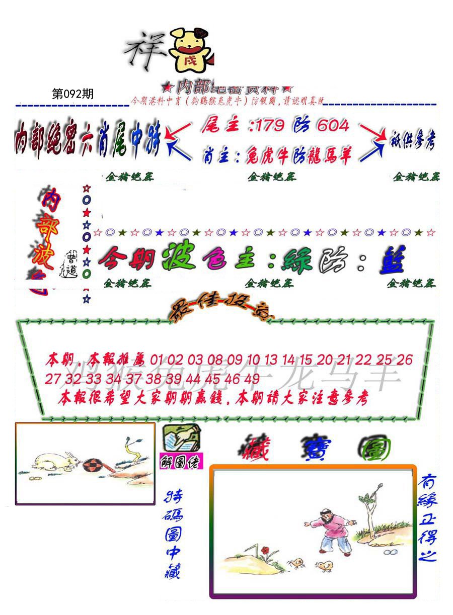 | 092期;绝杀【羊肖】绝杀【0尾】开:?00准 |