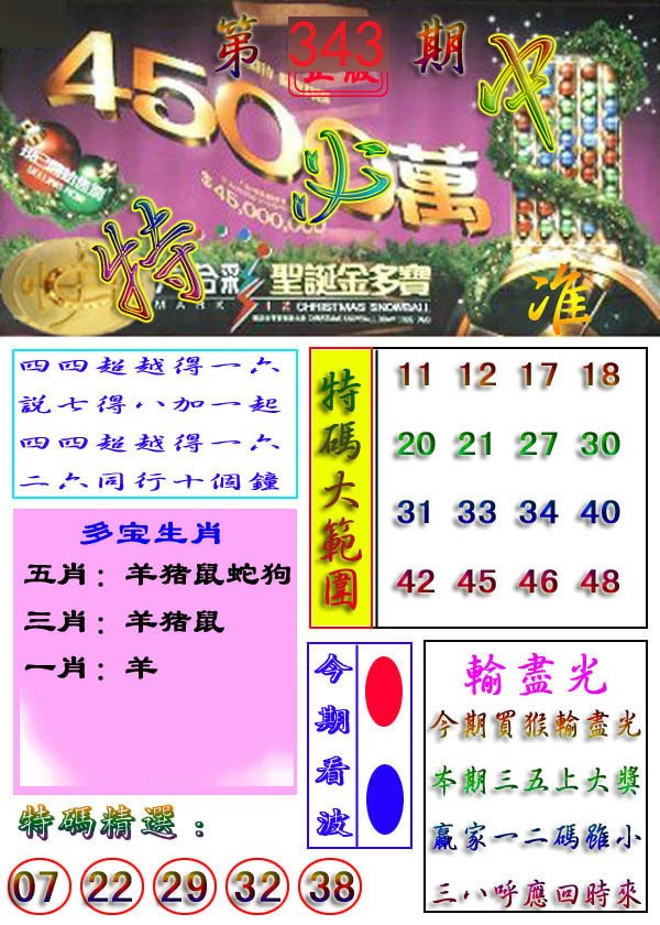 | 342期;【蛇马羊牛鼠狗兔猪龙】开:蛇37准 |