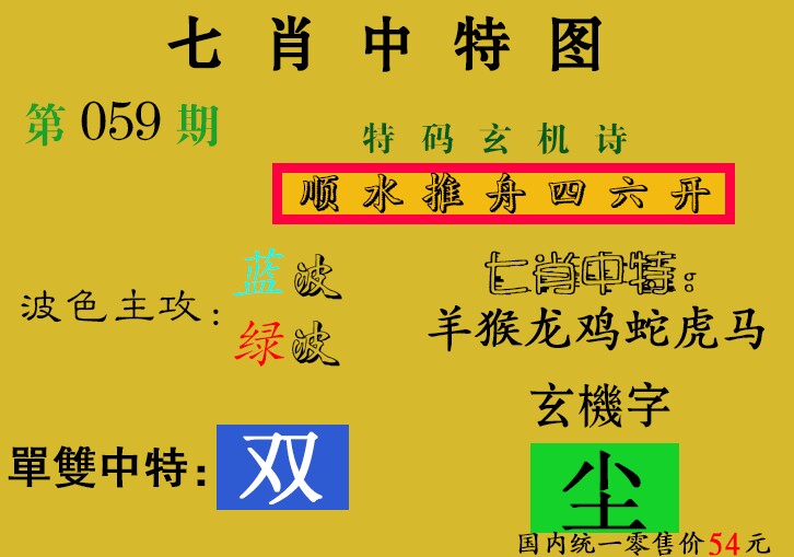 | 054期;【猪羊龙马猴蛇兔虎鸡】开:蛇14准 |