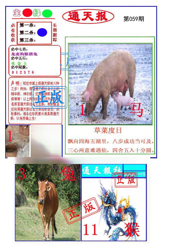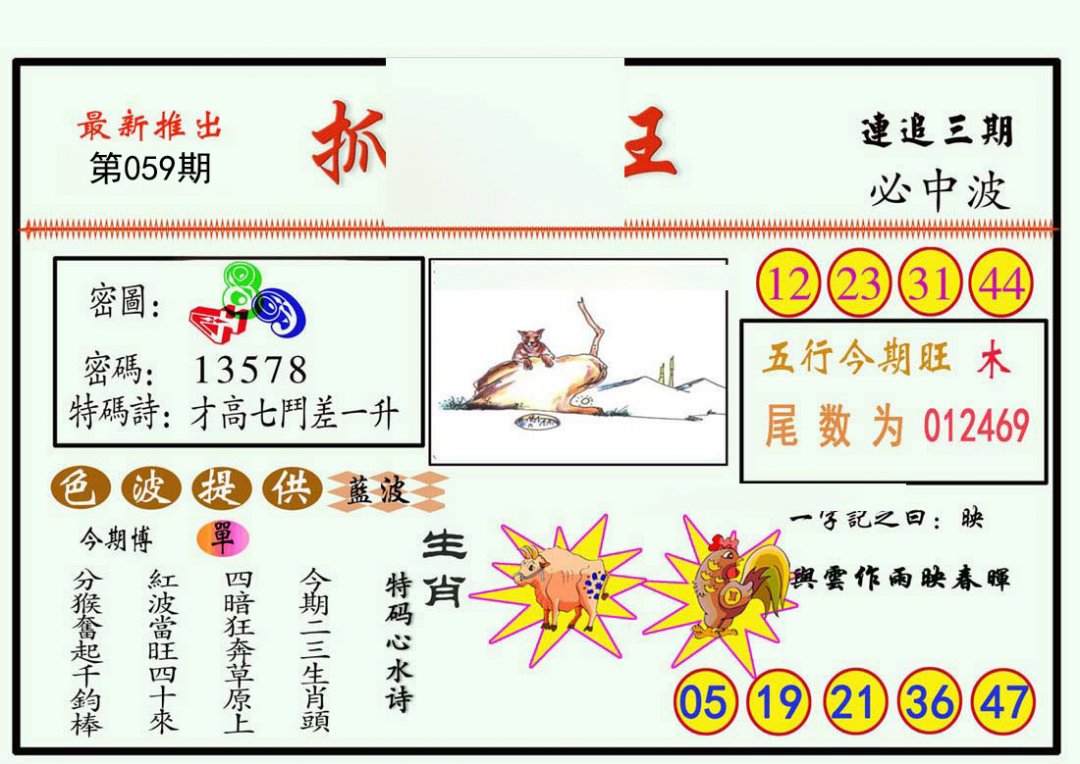 | 059期:⑤肖 | 鼠羊猴猪虎 | -0中 |
