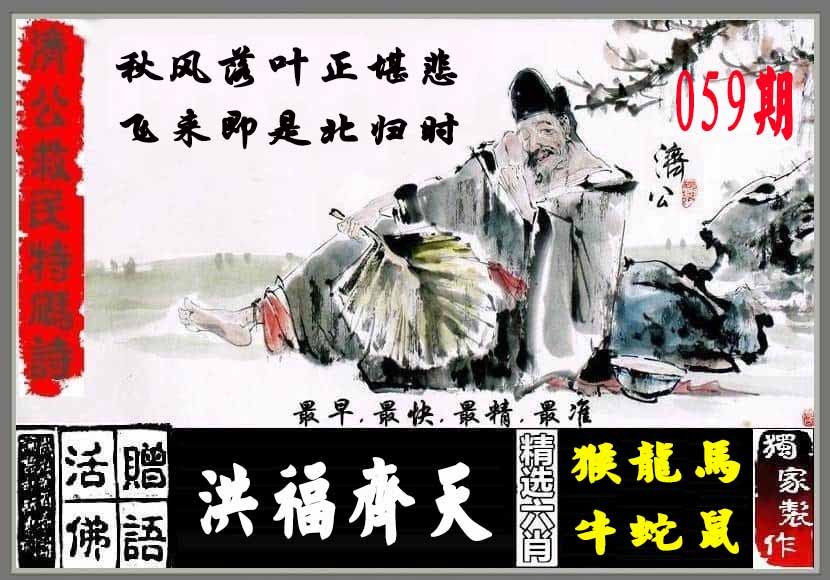 | 059期:⑨肖 | 鼠羊猴猪虎狗兔蛇龙 | -0中 |