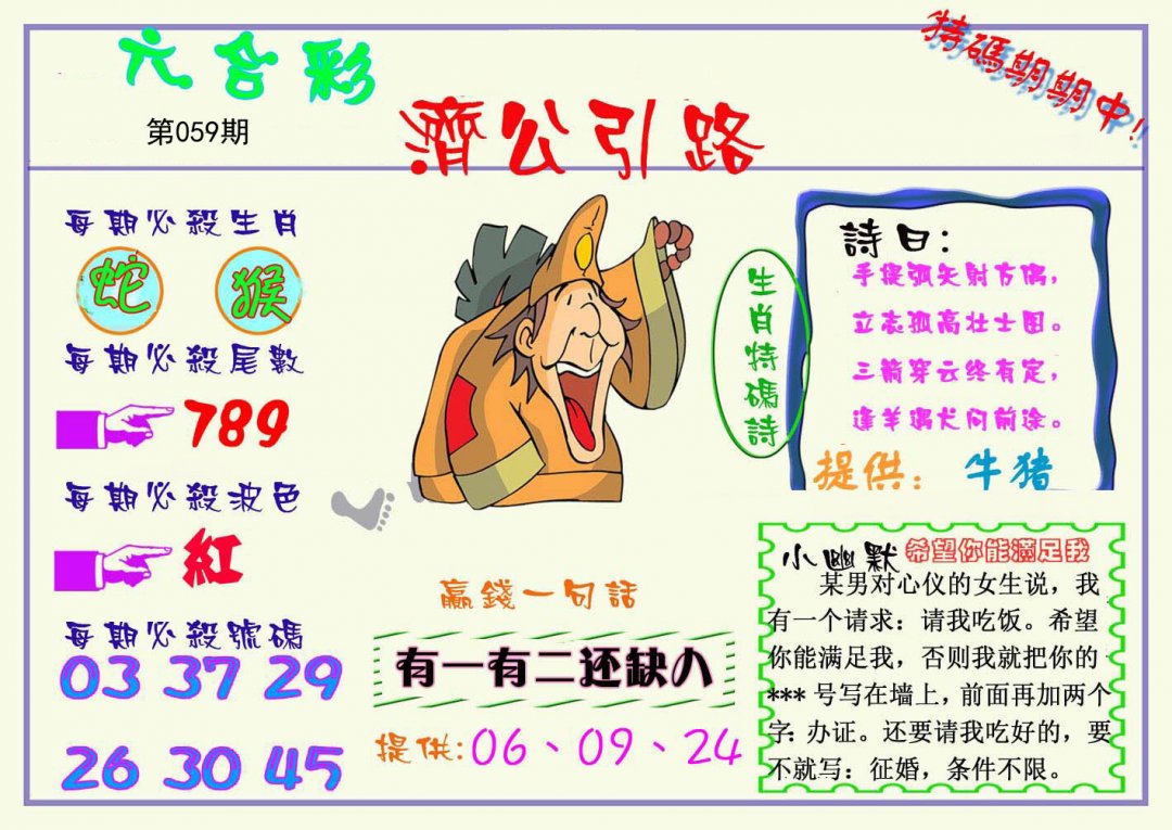 | 059期;绝杀【狗肖】绝杀【2尾】开:?00准 |