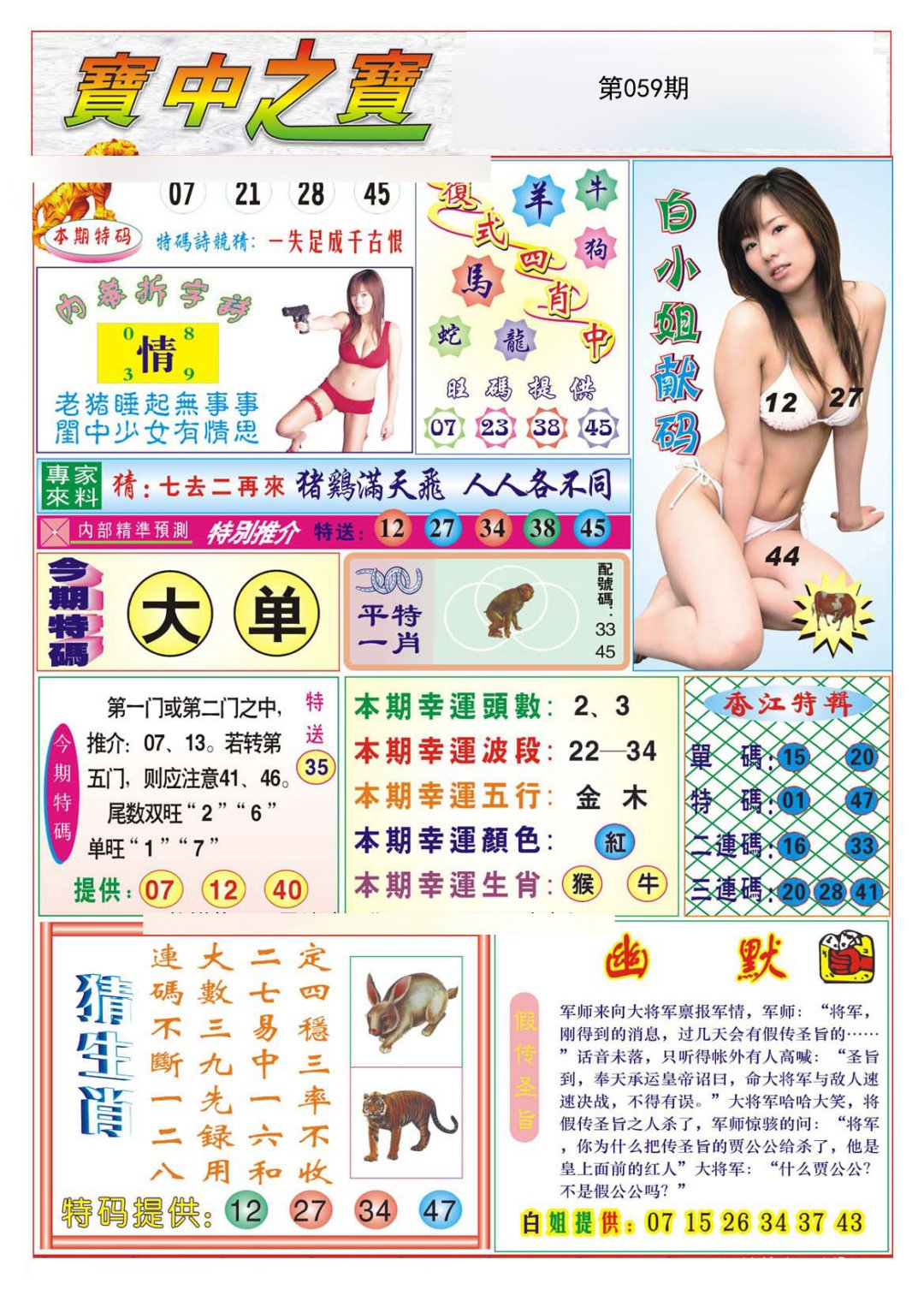 | 059期:⑦肖 | 鼠羊猴猪虎狗兔 | -0中 |