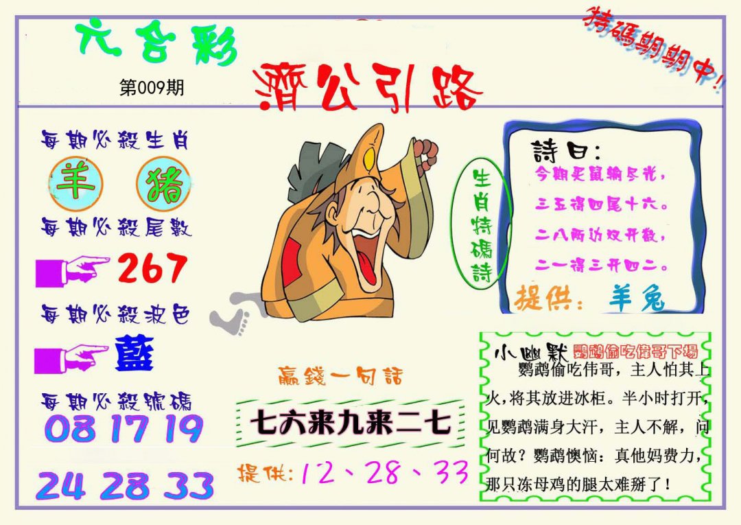 | 009期:⑨肖 | 鸡马龙牛猪猴虎狗兔 | -0中 |