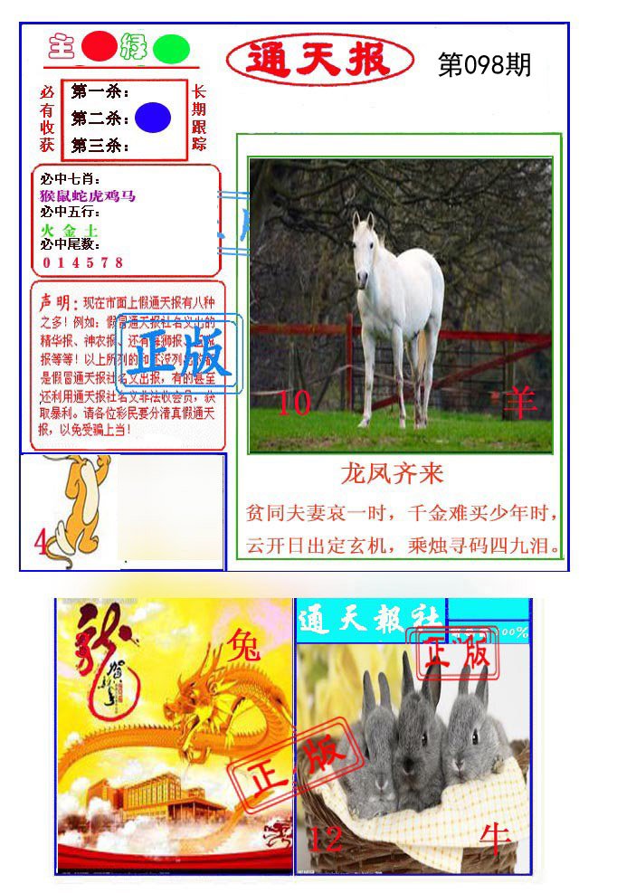 097期金牌⑥肖【鼠龙狗马兔牛】开:0准 |