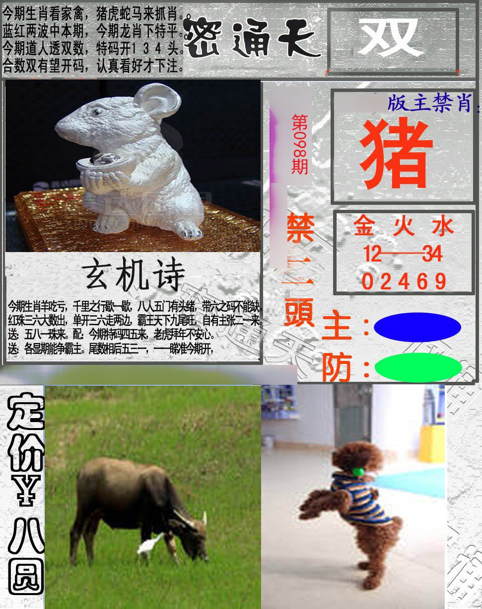 | 097期:⑤肖 | 狗牛虎马鼠 | -0中 |