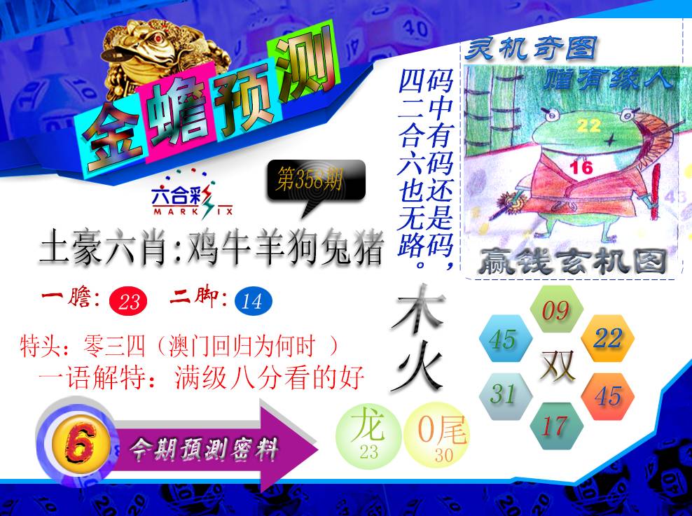 | 358期:⑦肖 | 猴狗猪兔龙马牛 | -0中 |