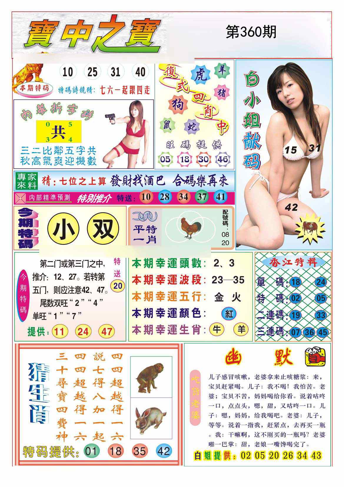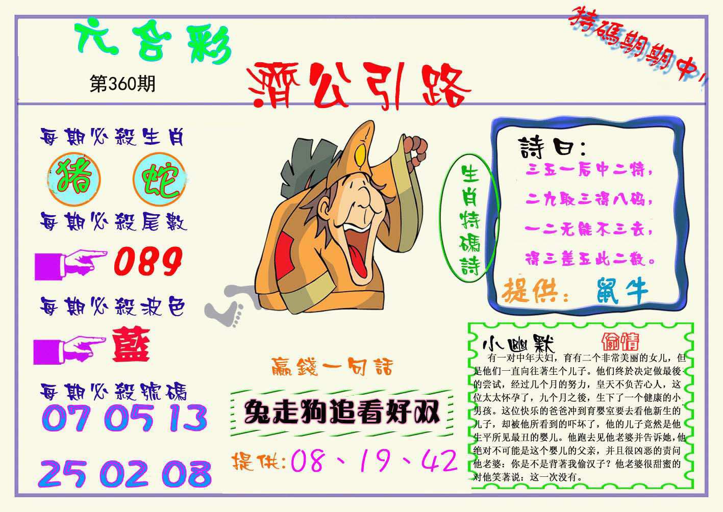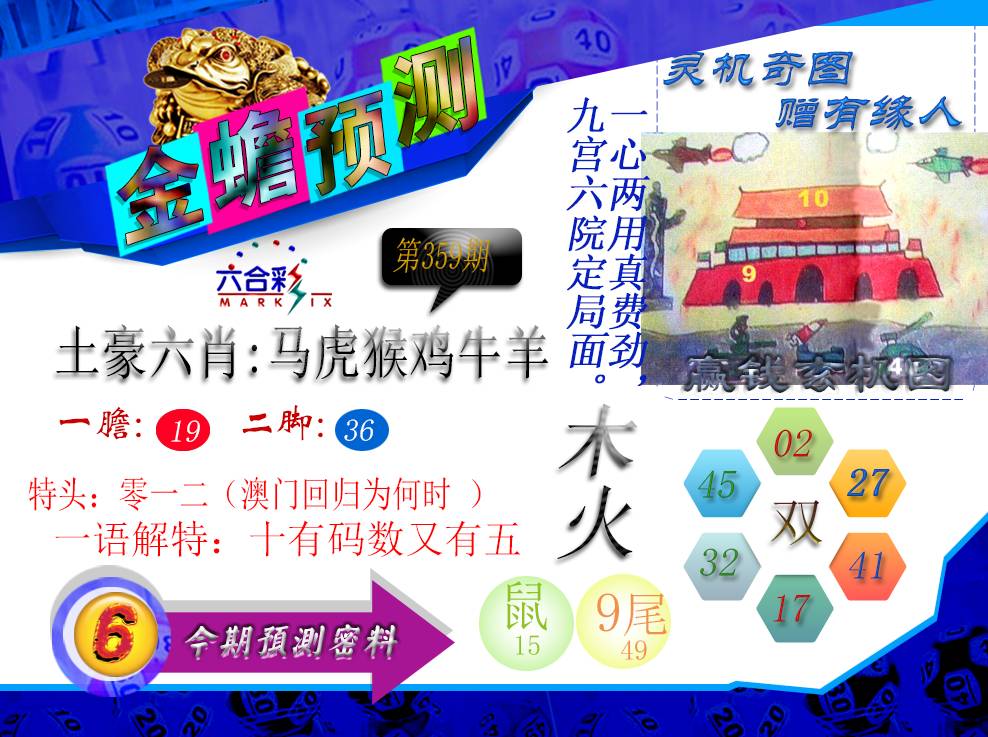 | 359期;绝杀【猴肖】绝杀【6尾】开:牛41准 |