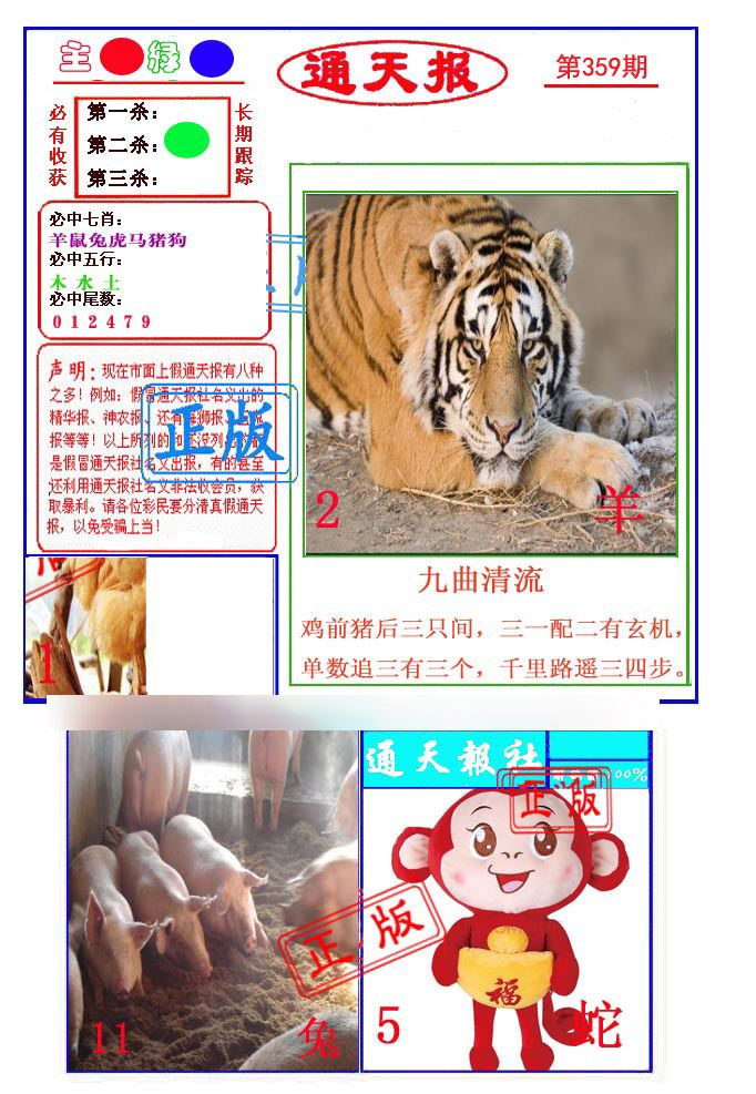 | 357期;【鼠虎鸡猪马狗龙牛羊】开:鸡33准 |