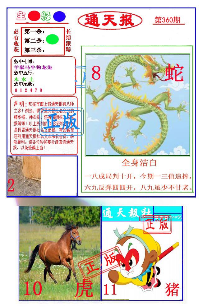 | 360期;绝杀【龙肖】绝杀【1尾】开:?00准 |